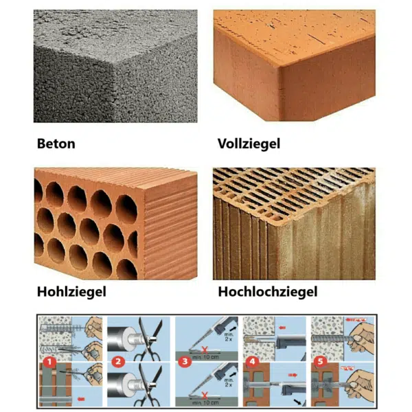 Beton ,Gasbeton ,Mauerwerk ,Vollstein/Lochstein ,Granit ,Kalksandstein ,poröse Altbauwände |