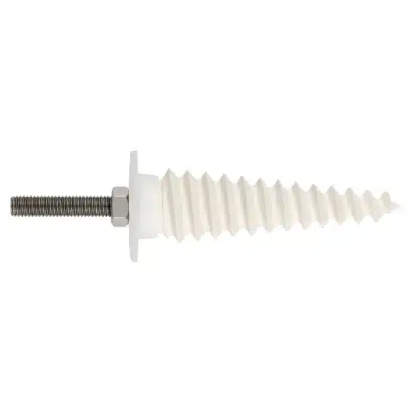 Eine Edelstahl-Gewindestange bietet dauerhaften Korrosionsschutz, während die beiliegende weiße Abdeckkappe die Befestigungsstelle zuverlässig gegen Feuchtigkeit abdichtet und optisch unauffällig integriert.