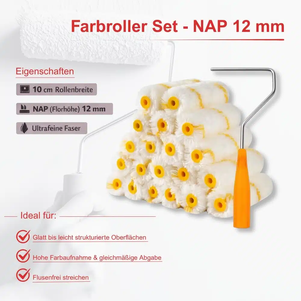Komplettes Farbroller-Set (21-teilig) – 10 cm Malerrollen für Haus & Hobby