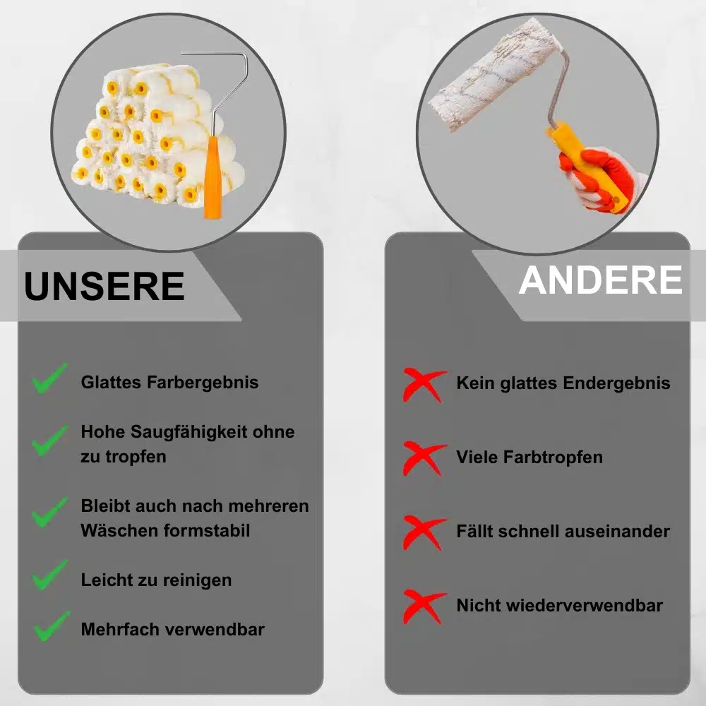 Dieses Farbroller-Set ist für Heimwerker und den gelegentlichen Gebrauch gedacht. Es ist nicht für den dauerhaften professionellen Einsatz vorgesehen, erfüllt aber zuverlässig typische Arbeiten rund um Haus und Wohnung.